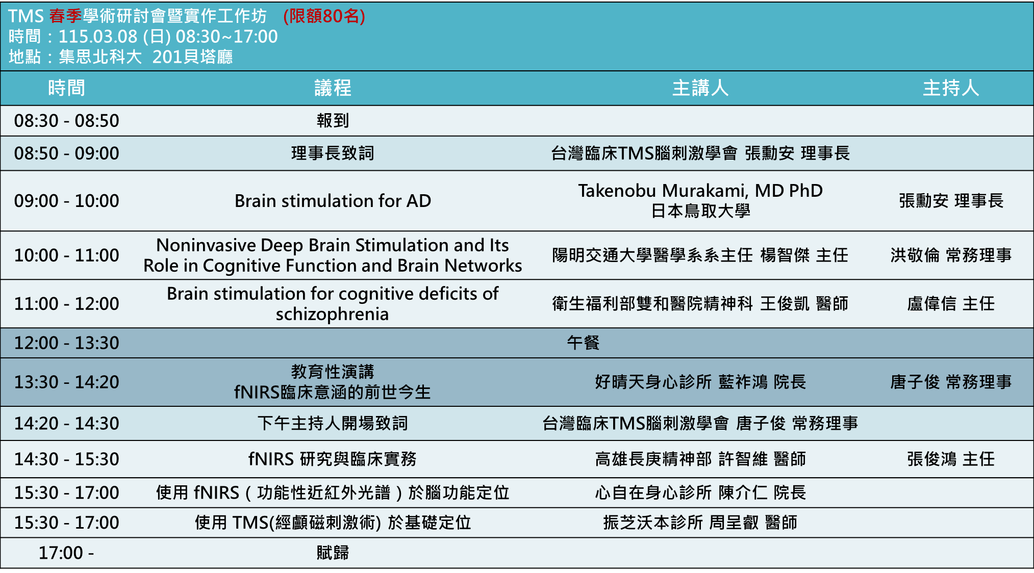 時間:115年03月08日 (星期日) 08:30~17:00