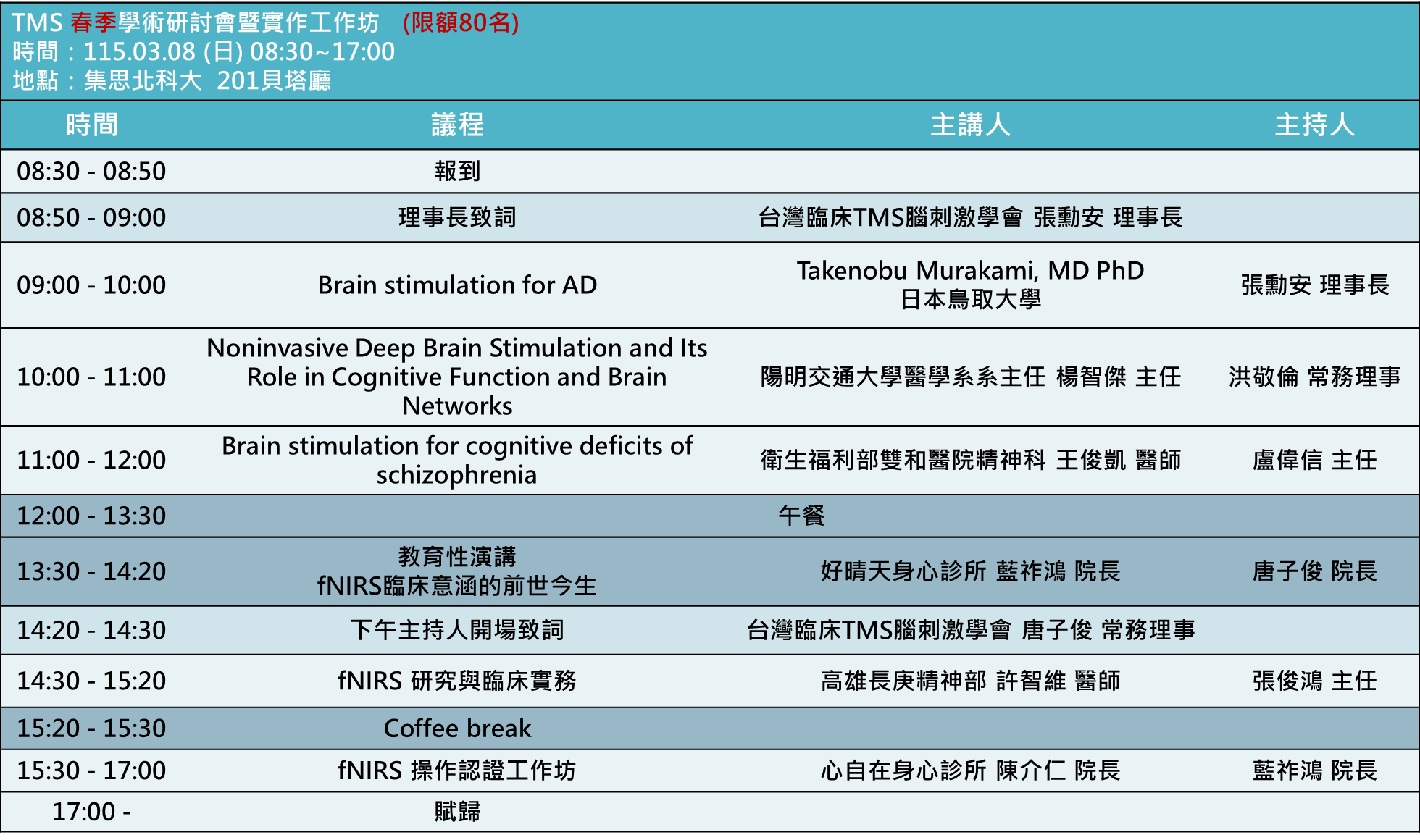 TMS精準治療:治療protocols與專家對話(限額80名)