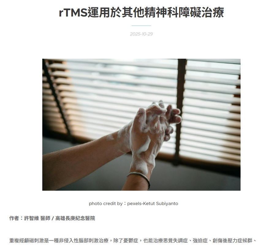 最新文章發布:rTMS運用於其他精神科障礙治療